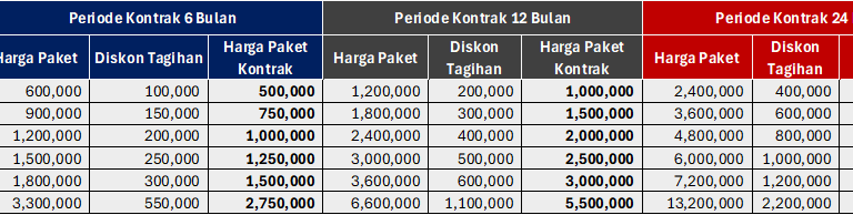 - Hanya berlaku untuk periode kontrak 6, 12 dan 24 bulan.